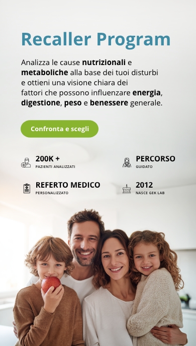 Recaller Medical Program ti aiuta a capire se stai consumando in eccesso specifici alimenti misurando l’infiammazione del tuo organismo e interpretando l’eventuale presenza di mutazioni al gene TNFSF13B legate allo sviluppo di infiammazione correlata al cibo.